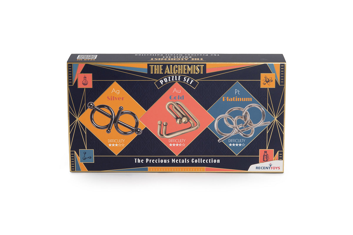 Precious metals such as gold, silver, and platinum are famous for their high quality, purity, and value. Inspired by alchemy, the ancient practice of transformation, this puzzle series captures the magical quest for perfection. This set of three represents the lasting beauty, charm, and elegance of these metals, providing an engaging and refined challenge. Explore the sparkle of Gold, the charm of Silver, and the elegance of Platinum in a series that honors their timeless legacy through the art of puzzling. Do you have what it takes?