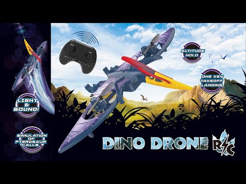 Conquer the prehistoric sky with Dino Drone! A Pterosaur drone with 2.4G remote control, LED lights and dinosaur sounds.