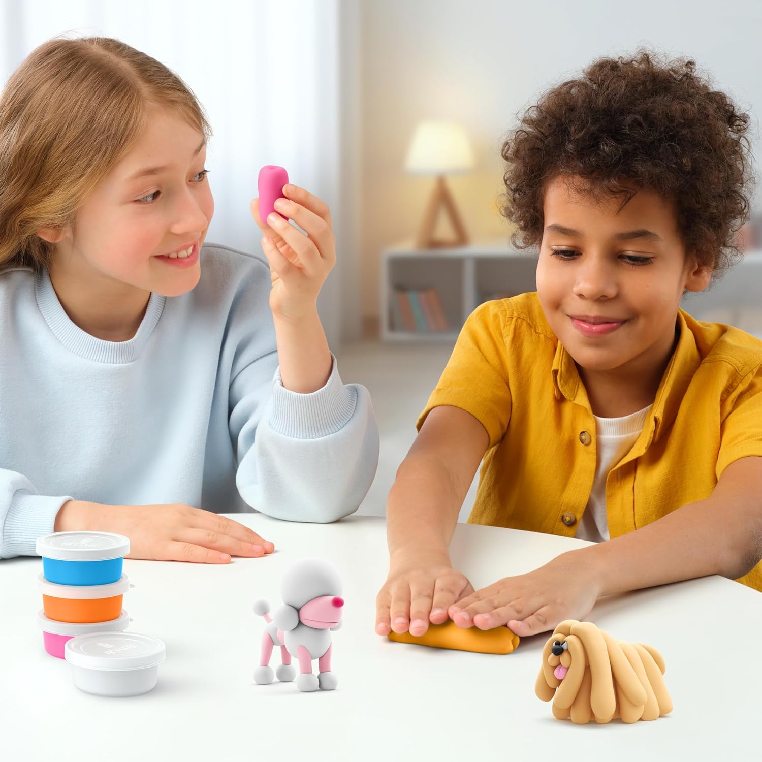 The cans of high-quality clay included in these vibrant play sets are soft, lightweight, non-sticky, nontoxic, and stain-free - Perfect for young artists taking their first step into the magical world of clay creativity.