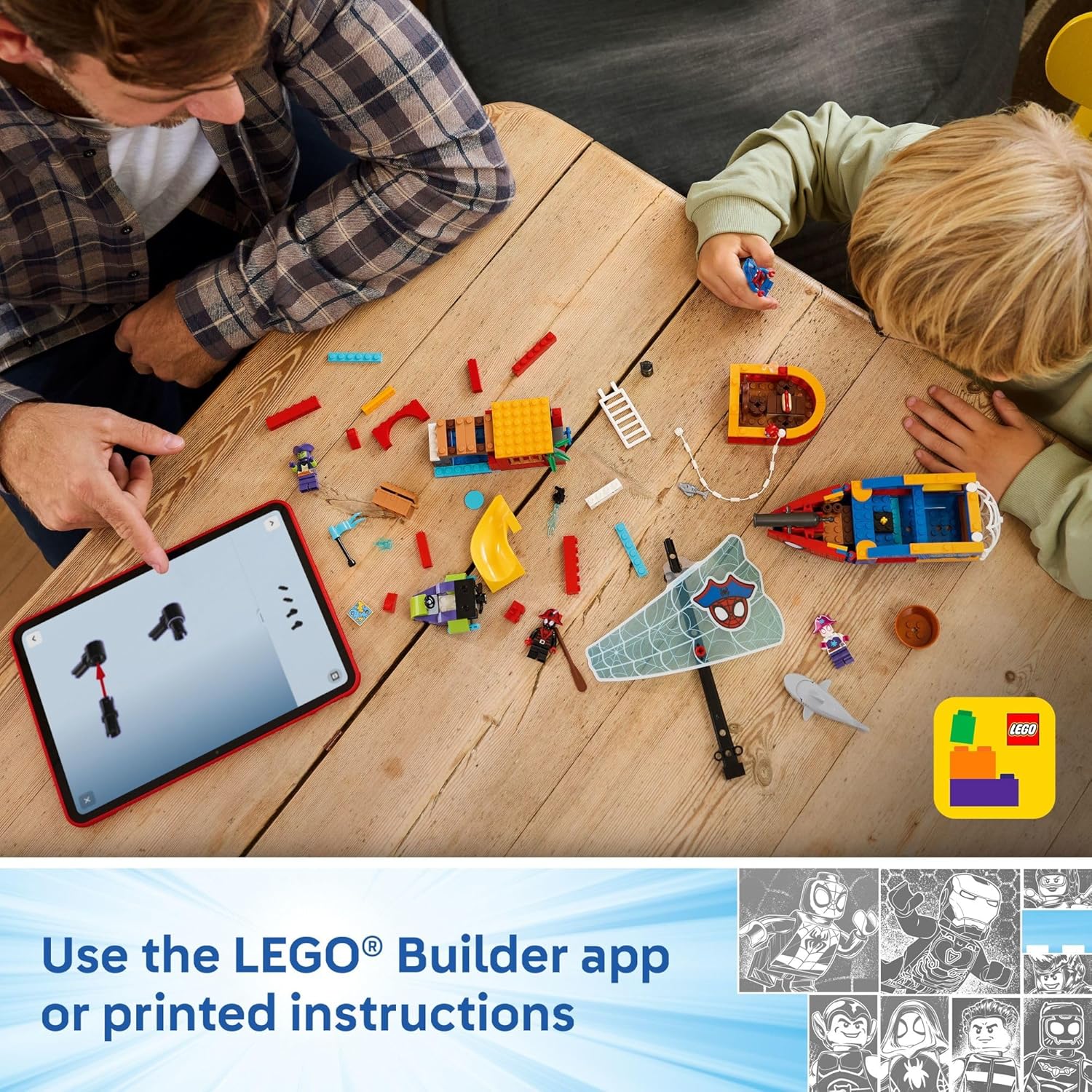 Kids set sail for imaginative play aboard the Team Spidey Pirate Ship (11208) creative building toy for boys and girls ages 4 years old and up. This feature-packed playset includes a pirate ship, Spider Island with a slide, Green Goblin’s ship and a smaller boat. There’s a cannon on the pirate ship, a disc shooter on the island and shooters on Green Goblin’s ship. Spidey, Green Goblin, Ghost-Spider and Miles "Spin" Morales minifigures are included and ready to be cast in builders' imaginative adventures. Spidey’s web rope can be used to catch a fish, a treasure chest or Goblin's ship. This gift makes a wonderful birthday or anytime present for preschool kids, and comes with colorful pictorial instructions, a Starter Brick and separate bags containing 1 buildable model per bag to make creative construction fast and fun. With the LEGO Builder app, kids can zoom, rotate in 3D and track progress with easy-to-follow digital instructions.