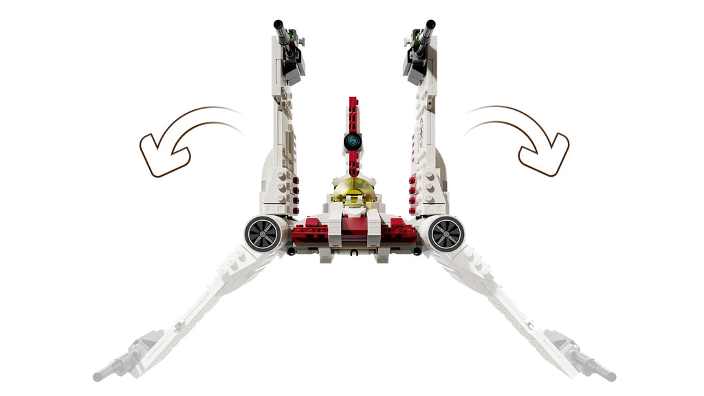 Team up with hero character General Obi-Wan Kenobi against Asajj Ventress, and swoosh into LEGO® Star Wars: The Clone Wars™ action with the V-19 Torrent Starfighter building toy for kids. An awesome Star Wars™ gift idea for fans aged 9 and up, the starfighter features 2 stud shooters and adjustable wings for flight and landing modes. The central wing can also be used as a handle for ‘flying’.
