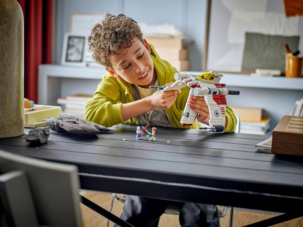 Enhance kids’ creative experience with the LEGO Builder app, which lets them zoom in and rotate a digital 3D version of the Star Wars starfighter as they build.