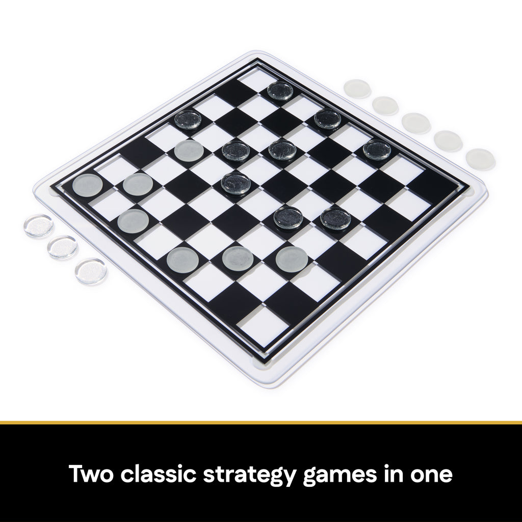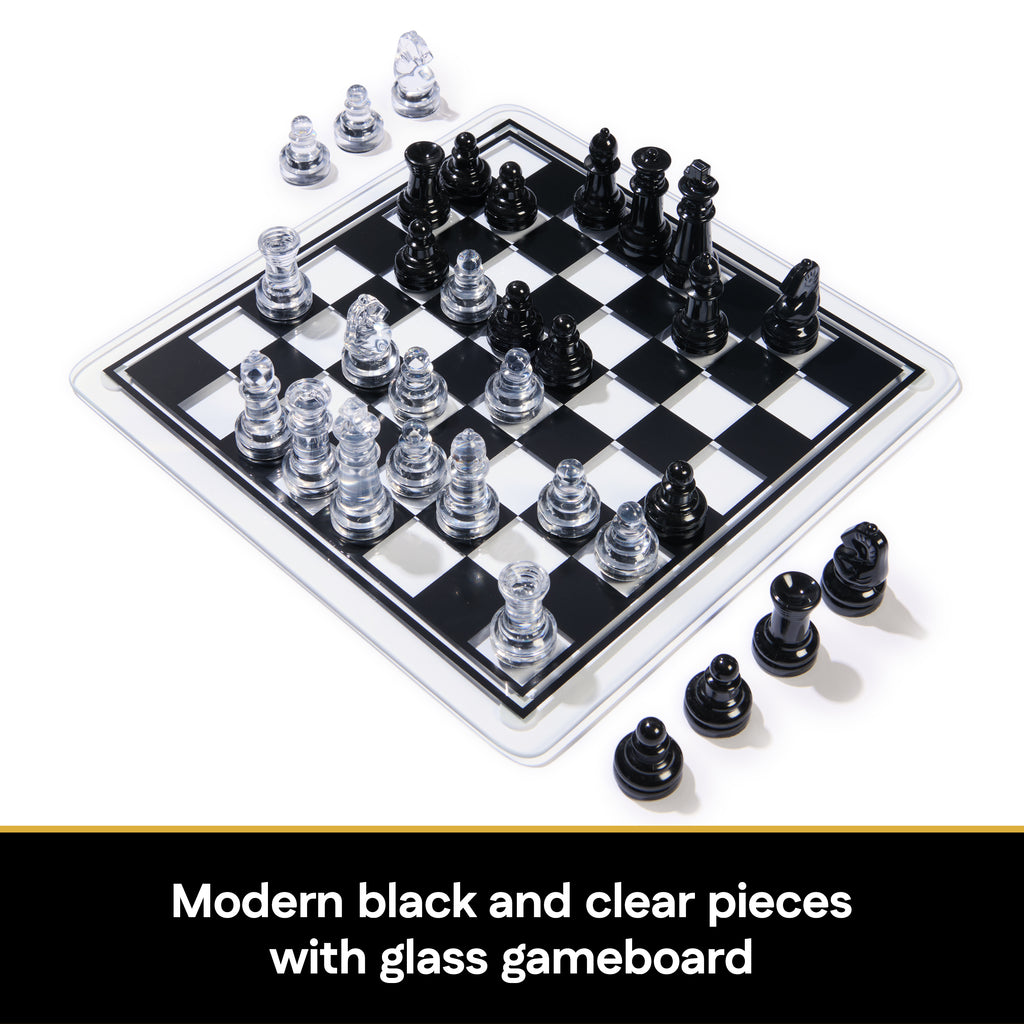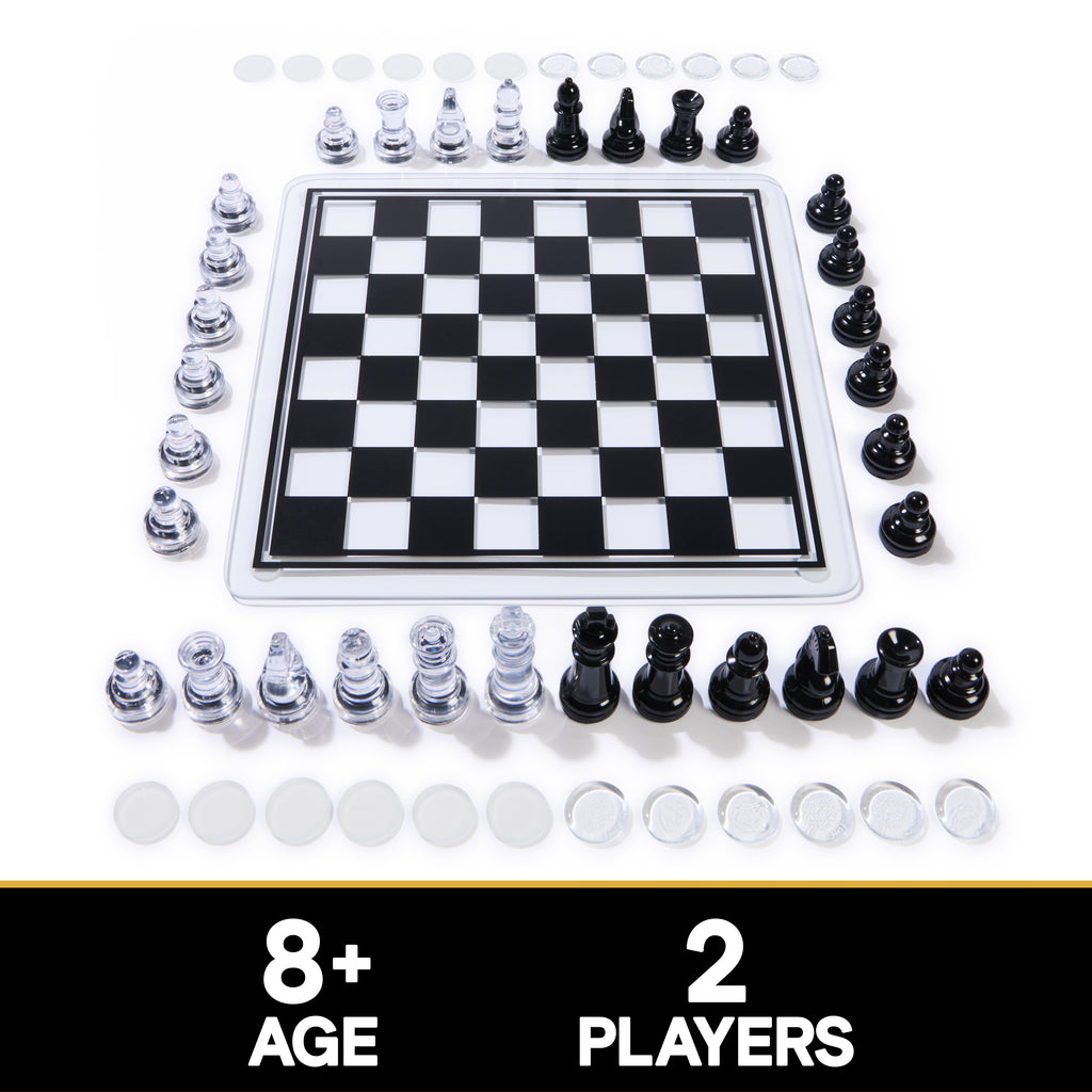 Elegant enough to leave out when you’re not playing or want to keep a game displayed for future reference, this Chess and Checkers set has black and clear pieces with a glass Gameboard. Chess: Believed to have been invented over a thousand years ago, the game of Chess has secured its place as the true King of all board games. Checkers: A simple game with unending play variations that continues to be one of the most popular strategy games in the world.
