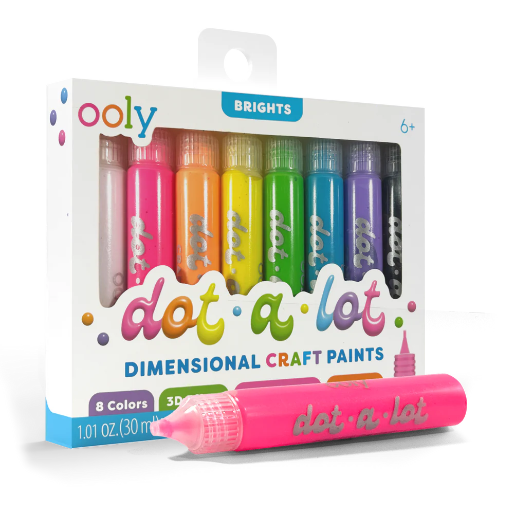 Bring your art to life—literally—with Dot-a-Lot 3D Dimensional Craft Paint! This set of 8 bright, bold colored craft paints adds texture you can see and feel. Designed for dot painting, decorating, and mixed media projects, each paint dries with a raised finish that adds an irresistible pop of dimension to any creation.