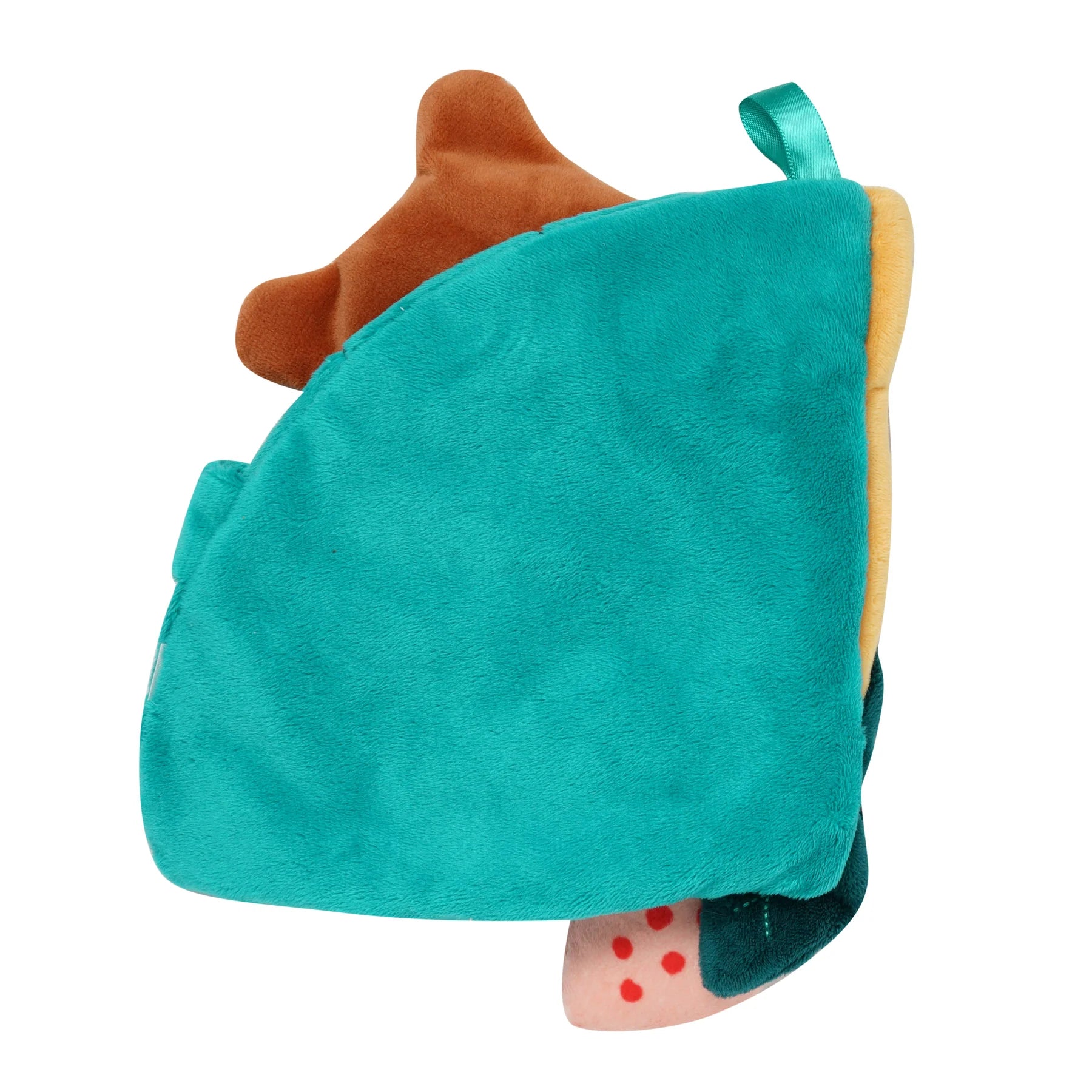 A tactile, sensory experience for baby to explore. Delight comes in small packages as this adorable soft book has a quality feel and diaper-bag-friendly size for enjoyment at home and on the go. The sensory-pleasing features include soft boa fabrics, crinkle sounds, vibrant colors, embroidered designs, a squeaker, and a rattle bee.