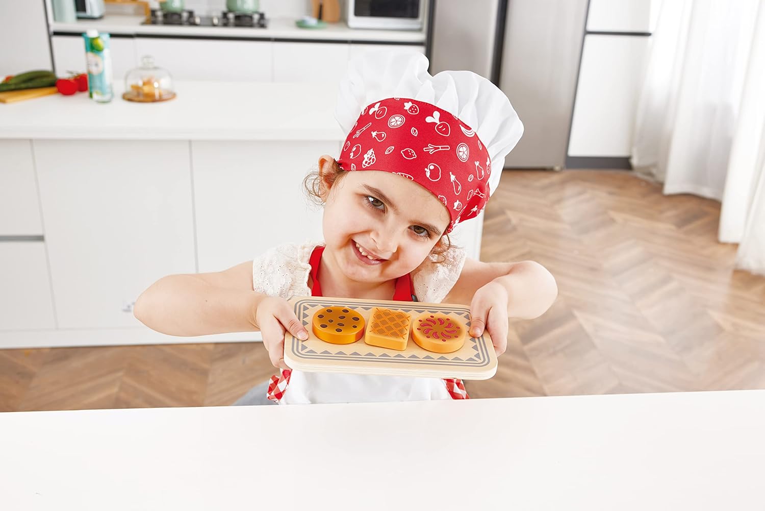 The six cookies with the set change color while they’re in the oven, just like the real thing. This adorable and colorful toy helps kids develop their imagination, language skills and social skills. They’ll love getting excited about cooking and learning about how to prepare the food they love to eat.