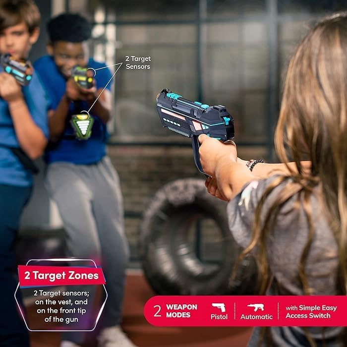 Choose between two weapon modes (Pistol and Automatic); Stealth Mode; Team or Solo mode; 150-foot reach; All this makes LightForce Laser Tag an intense, hi-tech, and altogether awesome home-based infrared laser tag game!